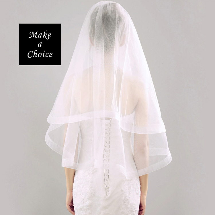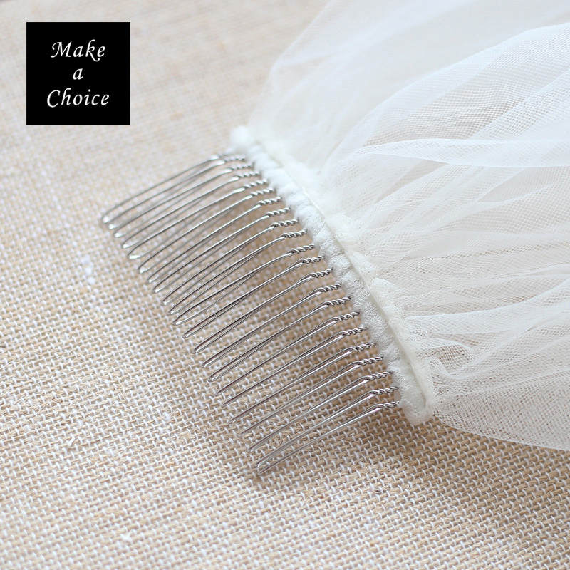 A170504【現貨】簡約短款雙層寬邊硬紗頭紗面紗帶髮梳【乳白色】