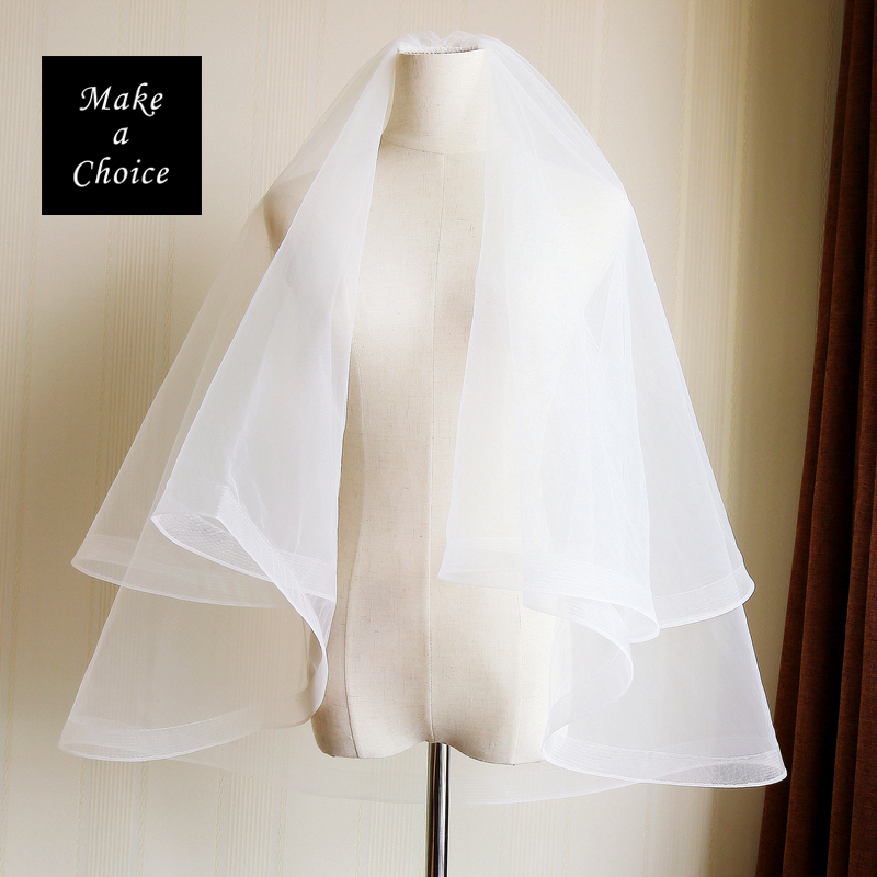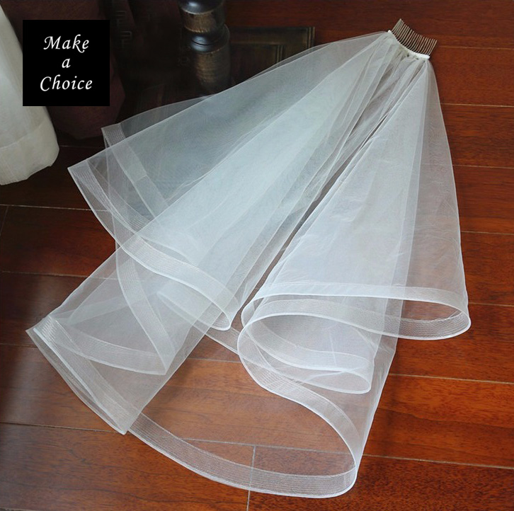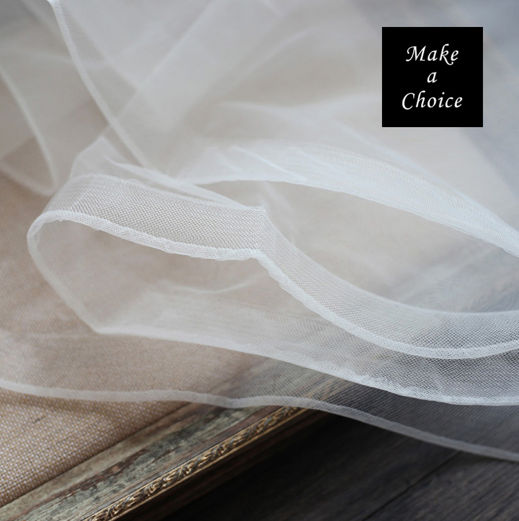 ★ 品名:簡約短款雙層寬邊硬紗頭紗面紗帶髮梳【乳白色】
