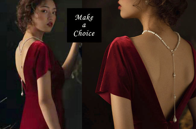 ★ 派對、表演 、自助婚紗推薦,效果絕佳!★ 真心覺得超美!小露性感又不失優雅(自己也忍不住留了一條)。質感很好,仿珍珠沒有塑料感,材質像玻璃珍珠,整體有些微重量。品質較好成本也較高,所以反應在價格上唷!