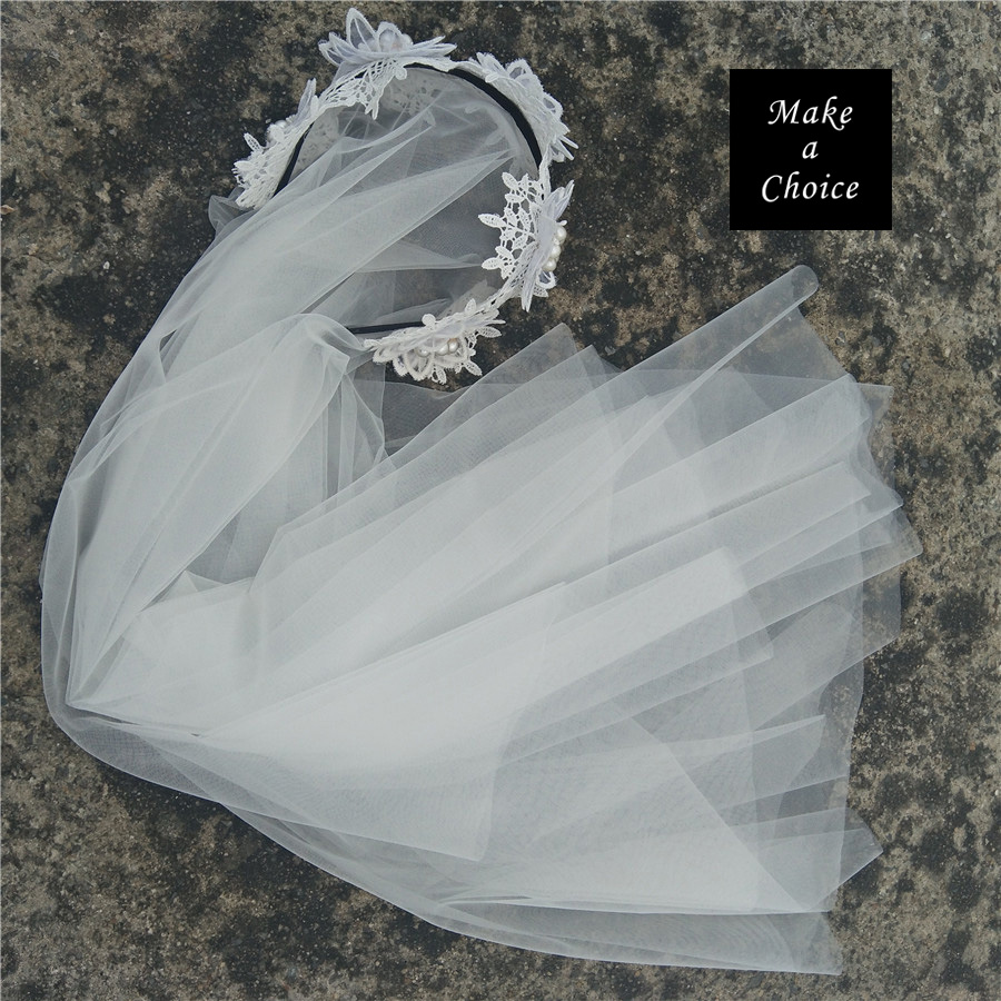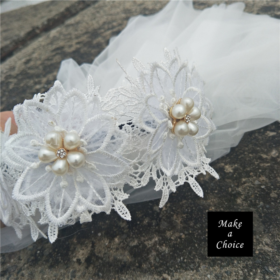 ★ 品名:唯美復古手工髮箍式蕾絲珍珠雙層軟網紗短款面紗頭紗