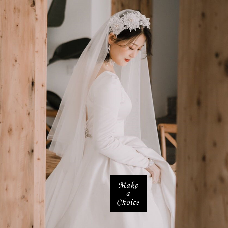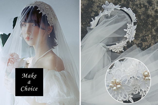 ★ 嗯,這款非常復古,一圈花蕾絲加上珍珠配飾,真的超美的!手工縫製,因為有蕾絲、珍珠水鑽、美美的軟紗,所以單價較高。此款為髮箍式,直接配帶即可,短款軟網紗垂墜效果好,雙層網紗,一面可往前當做面紗,非常方便攜帶,喜歡復古風格、自助婚紗超推薦。