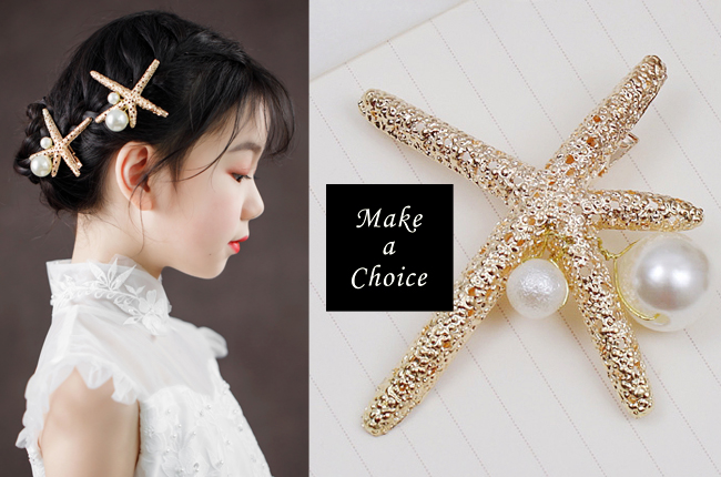 A190405【現貨】唯美金色海星星星珍珠髮夾邊夾。旅拍兒童