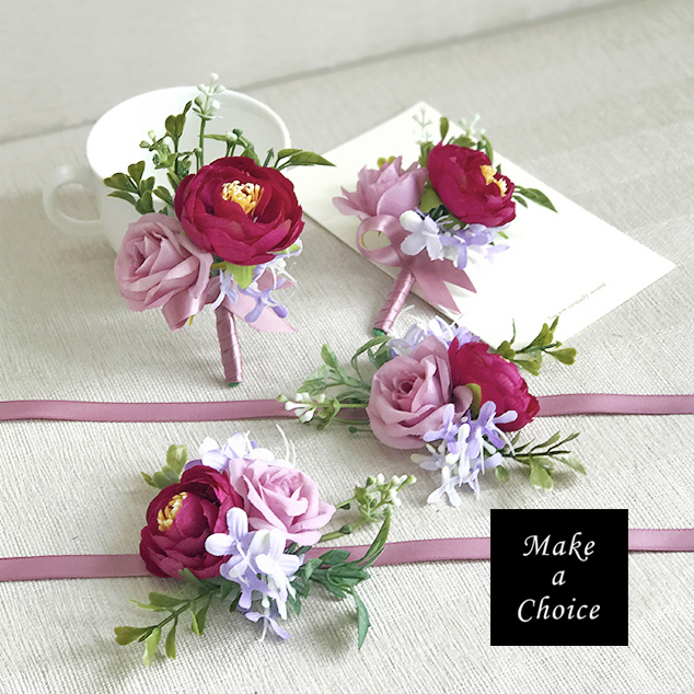 【A190510】【現貨】森林手工唯美花朵緞帶手腕花胸花【紫紅色】