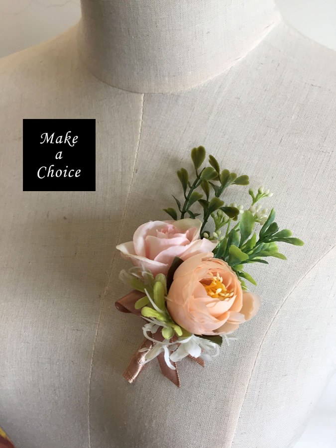 【A190511】【現貨】森林手工唯美花朵緞帶手腕花胸花【香檳色】