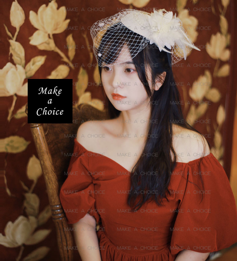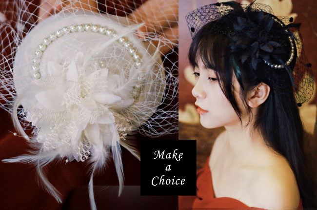 ★ 材質:仿珍珠、羽毛、絹花、網紗、塑膠。