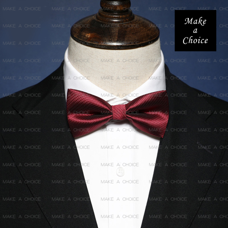★ 品名:新郎伴郎簡約領結西裝襯衫蝴蝶結【條紋酒紅色】