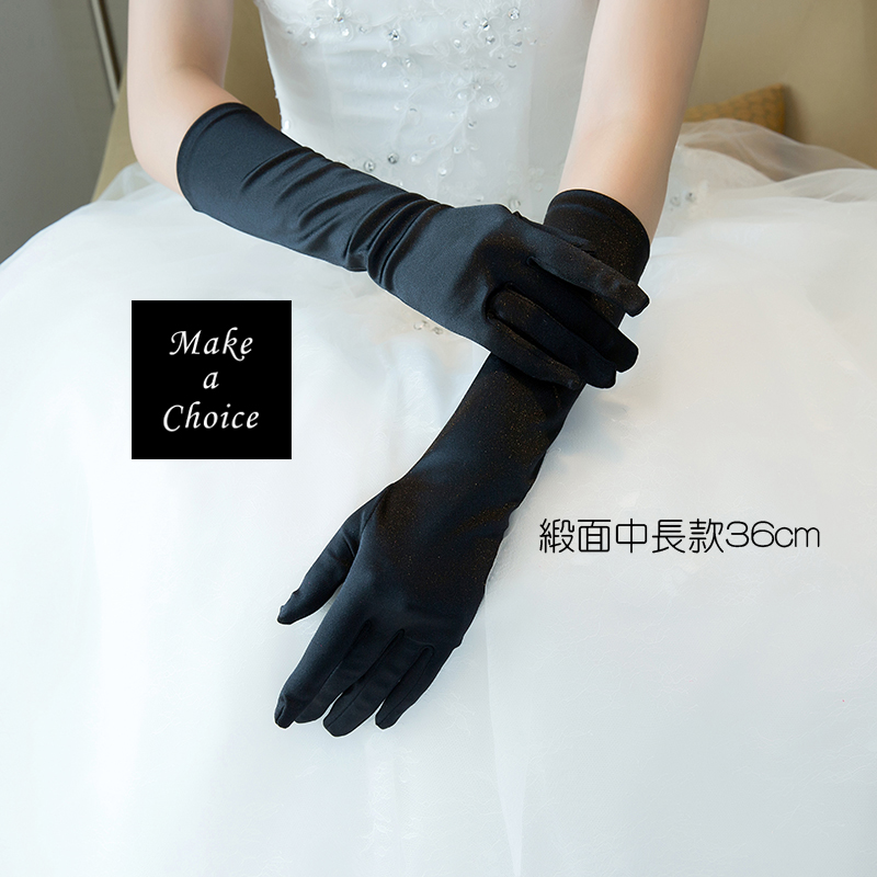 A210101【現貨】黑色優雅復古緞面長款造型手套【36cm、51cm】派對寫真禮服