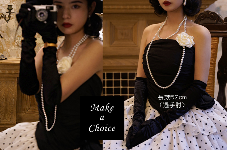 ★ 品名:黑色優雅赫本復古絲絨天鵝絨造型手套【短款、中長款、長款】