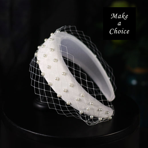 A220601【現貨】手工法式大網格網紗珍珠造型加厚絨布髮箍頭飾。新娘飾品寫真派對晚會活動