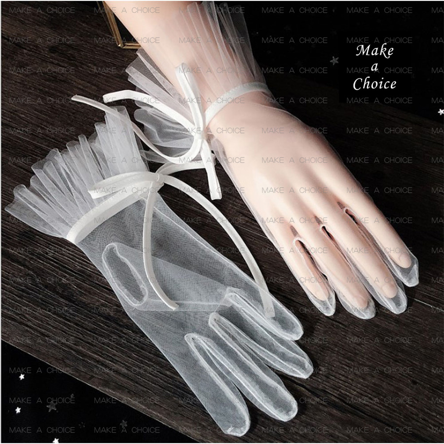★ 品名:法式復古甜美蝴蝶結綁帶薄款網紗花邊微彈性短手套