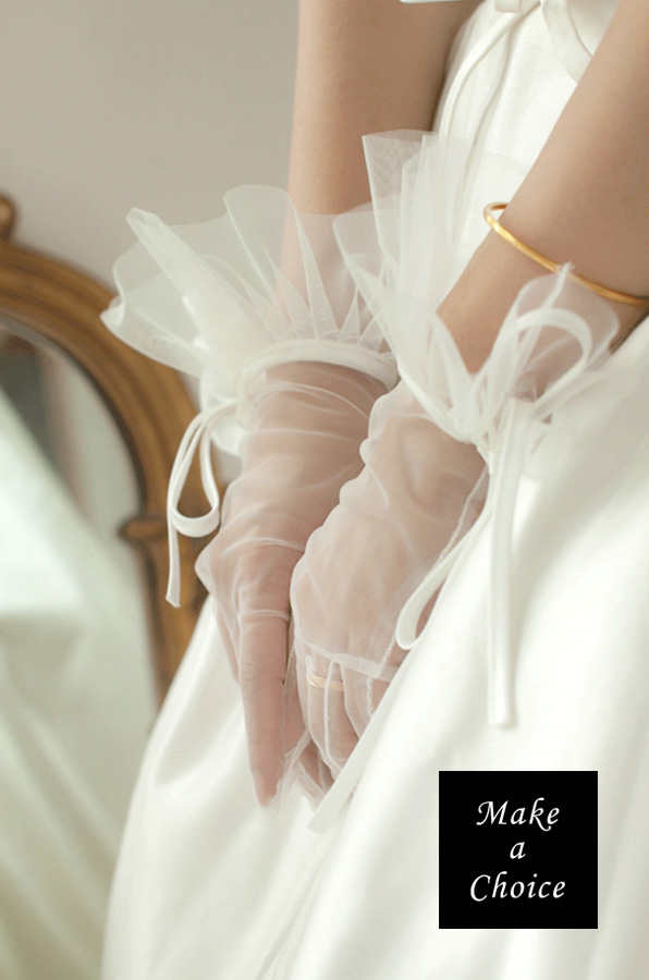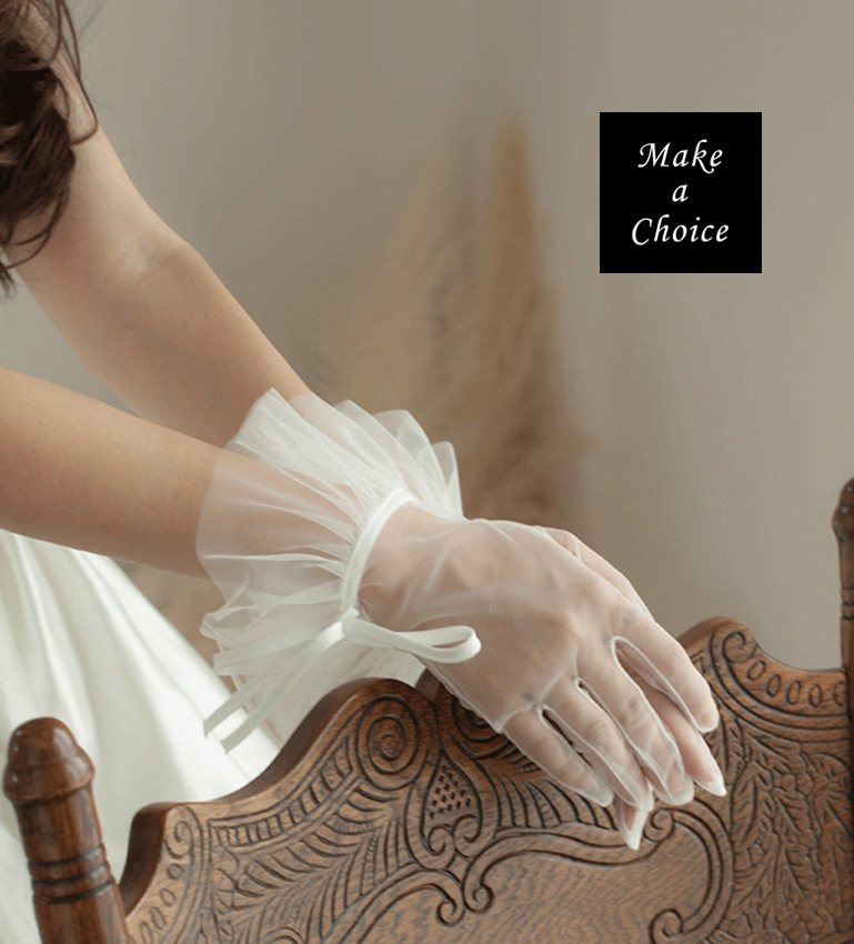 ★ 法式薄紗款式,蝴蝶結細緞帶設計,此網紗微彈性,手腕處因為是緞帶設計故無彈性,尺寸為均碼。