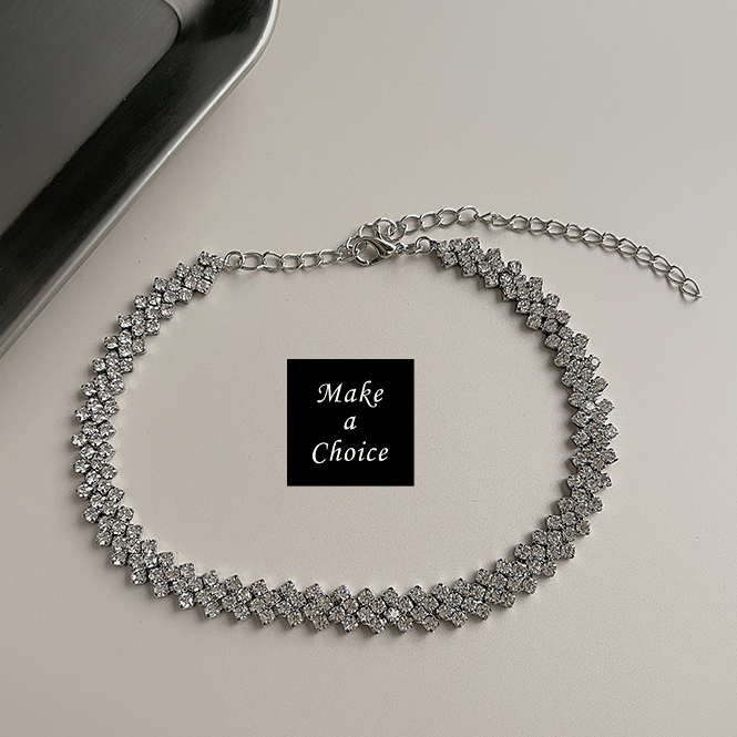★ 品名:小奢華窄版銀色閃耀水鑽頸帶短項鍊Choker鎖骨鍊