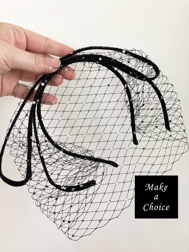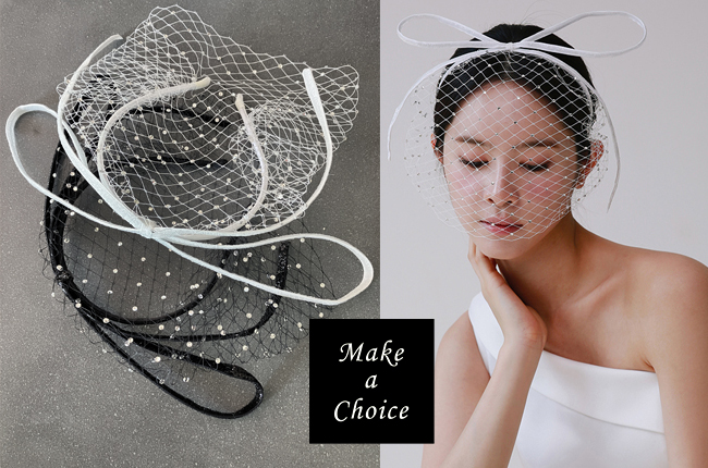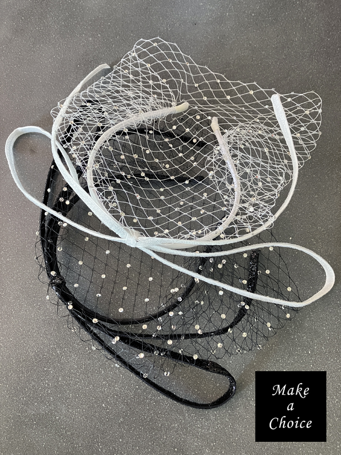 A231001【現貨】亮蔥緞帶大蝴蝶結菱格網紗滿鑽遮面面紗造型髮箍頭飾【黑色、白色】。新娘飾品寫真派對晚會活動