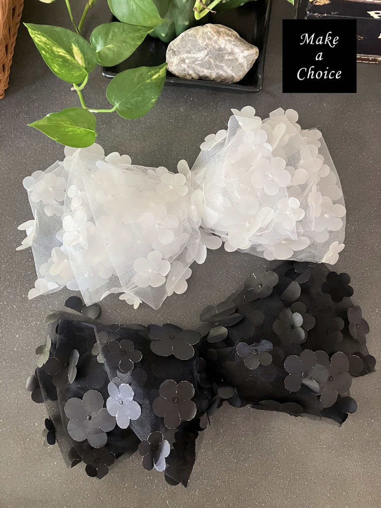 A240101【現貨】超仙浮誇立體花朵網紗超大蝴蝶結頭花髮夾彈簧夾【白色、黑色】。新娘飾品自助婚紗派對寫真表演
