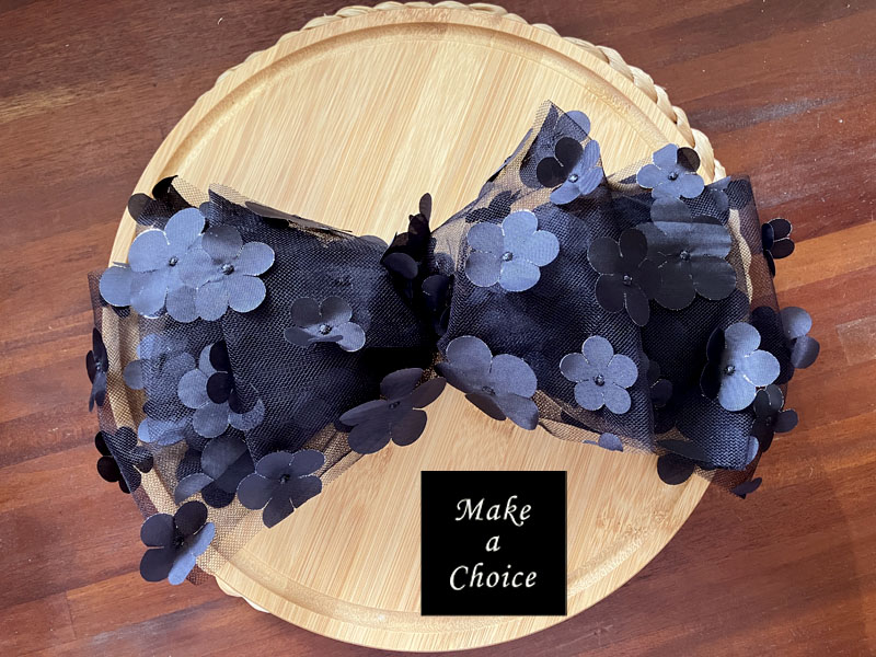 ★ 非常有存在感,大件網紗蝴蝶結,絹布花朵是縫繡於網紗上,非黏著不易掉落,三層蝴蝶結,網紗略有稍微硬度可自行手動調束澎度立體感,背面為彈簧夾設計,整體長約30cm唷!比較誇張的造型飾品,日常使用會太over。黑色蝴蝶結花朵有白邊是正常狀況,非瑕疵唷!