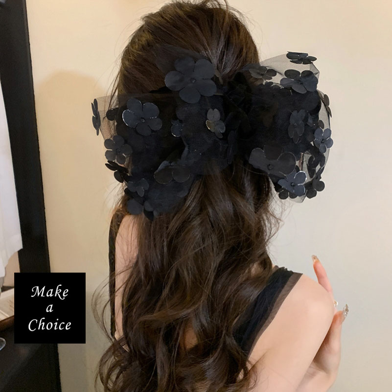 ★ 品名:超仙浮誇立體花朵網紗超大蝴蝶結頭花髮夾彈簧夾【白色、黑色】