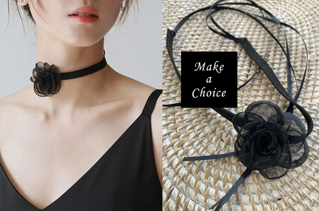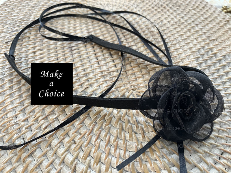 ★ 品名:【兩用-項鍊/手腕花】法式黑色網紗花朵緞帶二用頸花頸鍊短項鍊Choker鎖骨鍊手腕花