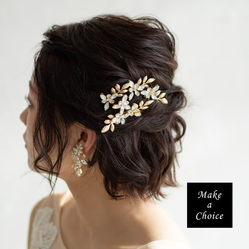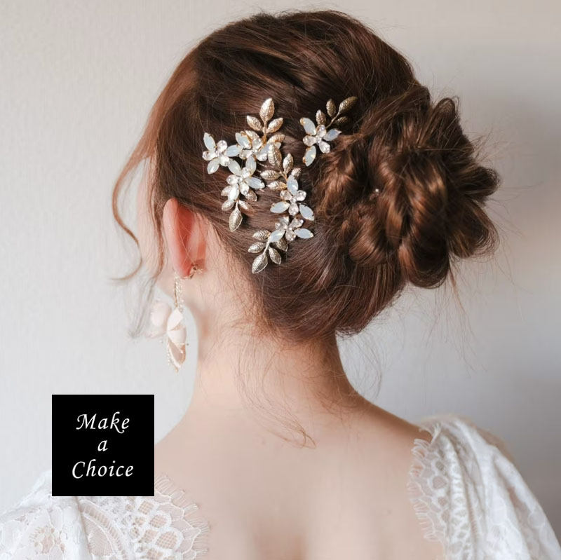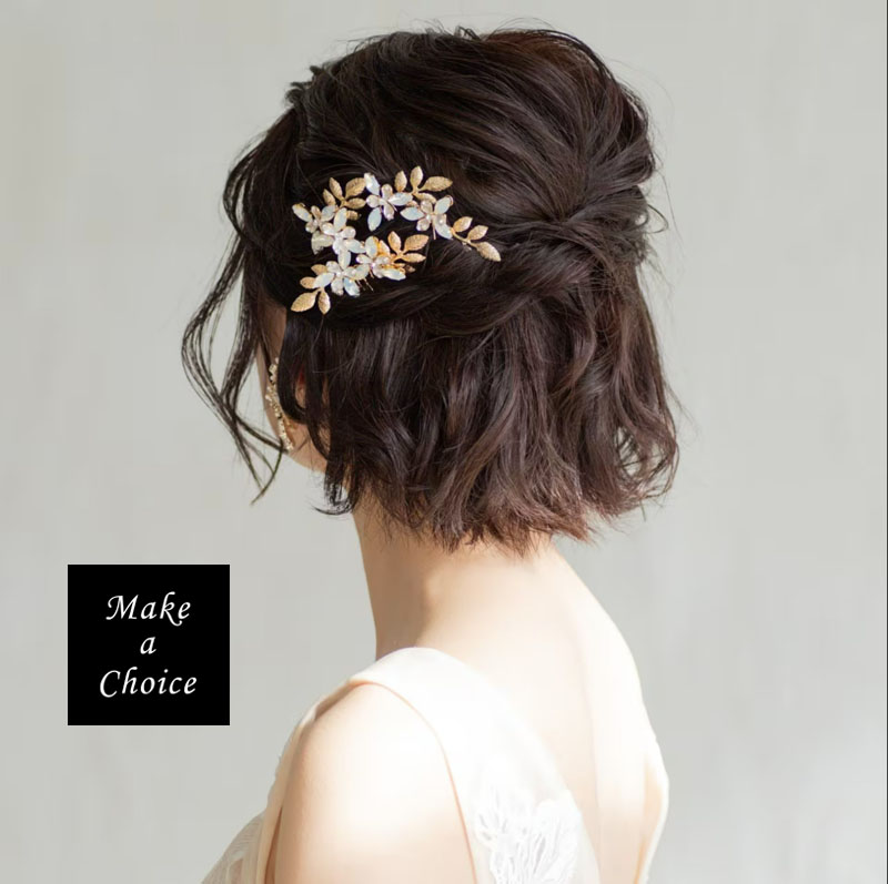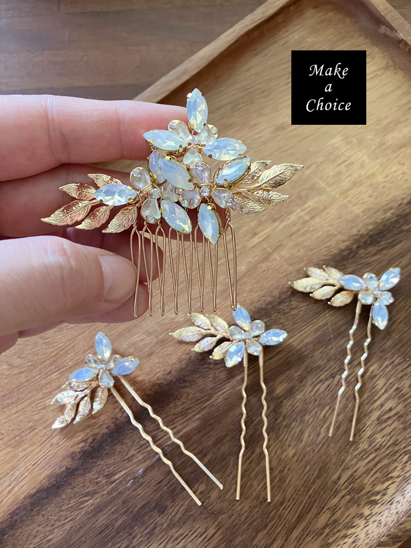 A240501【現貨】歐式手工精緻金色枝葉蛋白鑽髮梳髮簪套組。髮叉髮插髮飾盤髮編髮新娘