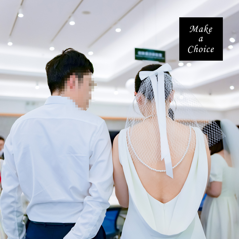 ★ 有別於一般網紗頭紗,此為網格紗+蝴蝶結緞帶設計,更加簡約好搭,鴨嘴夾設計,只要別上頭髮即可,高低位置不同效果,可依風格調整,長約40cm,配帶後約在肩膀下方位置左右,適合簡約婚禮、求婚、登記拍照、公證或出國配帶使用。
