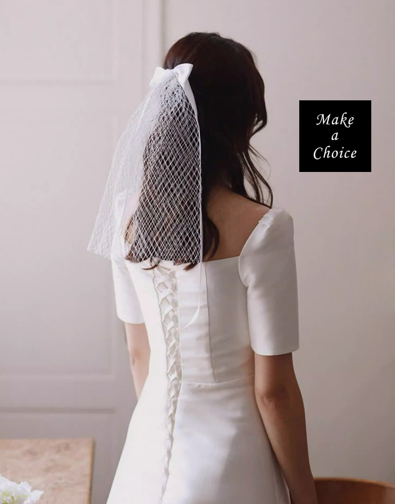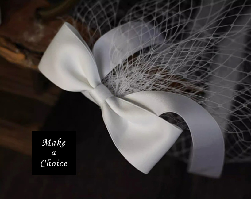A240603【現貨】法式蝴蝶結網格頭紗短紗新娘頭紗(長40cm)【白色、黑色】。新娘飾品自助婚紗登記公證求婚攝影拍照派對表演