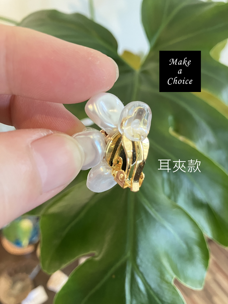 ★ 此款分有「耳針、耳夾」兩款,沒有耳環的可以選擇耳夾,耳針款的為925銀軟針,中間金色串珠,不規則仿珍珠花瓣可是手調整展開幅度的,每批物料不同金色色澤會有些許不同唷!可接受者請再下單。