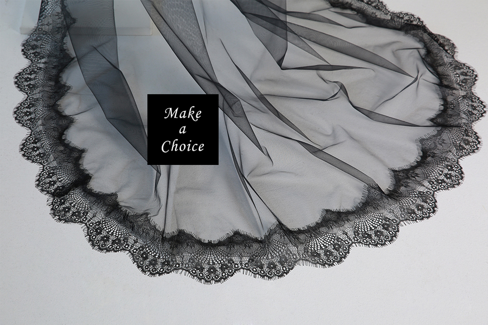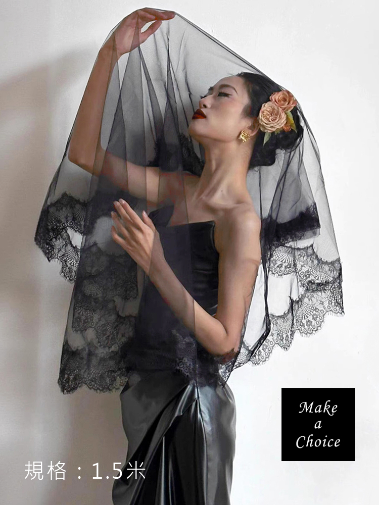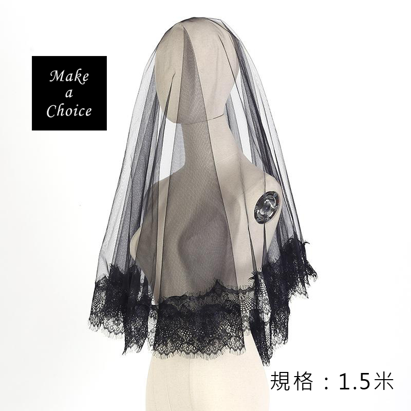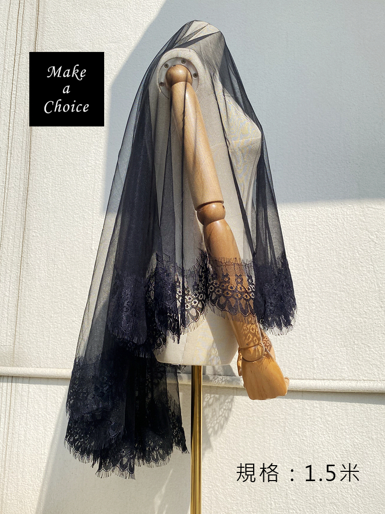 ★ 品名:法式復古黑色睫毛蕾絲邊造型軟頭紗1.5米、3米