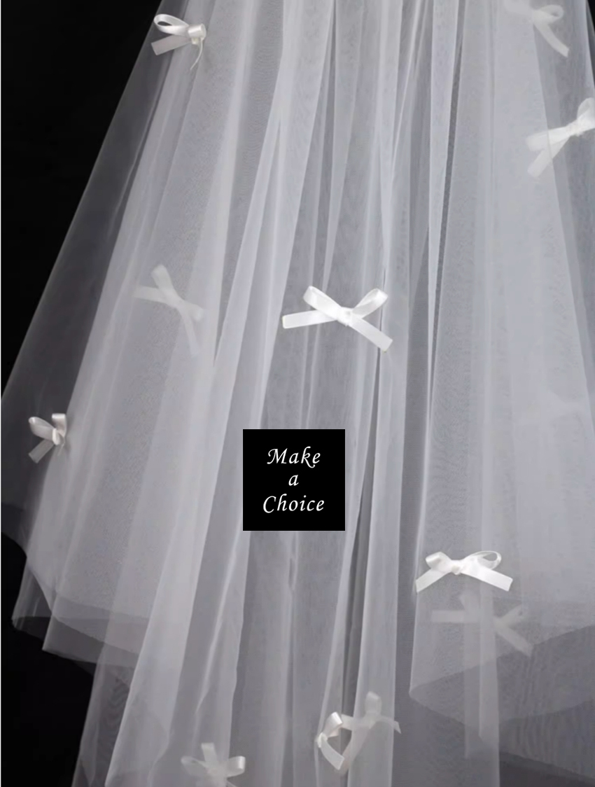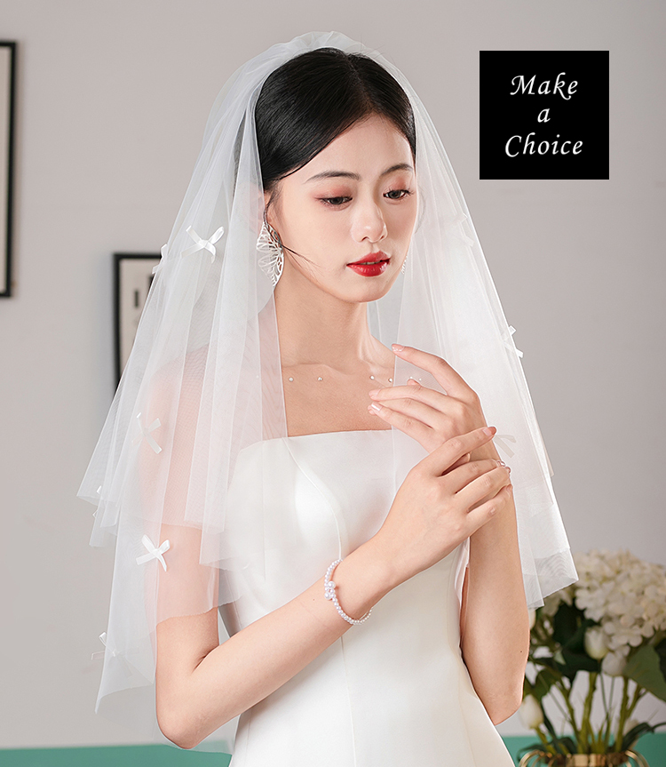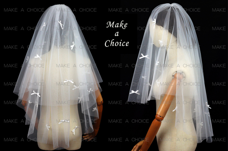 ★ 帶髮梳雙層頭紗,軟紗材質,整件點綴細緞帶小蝴蝶結手工縫製不易掉落,每件蝴蝶結配置都不同,可接受請再下單唷!上層短紗65cm、下層長紗85cm,優雅又可愛哦!