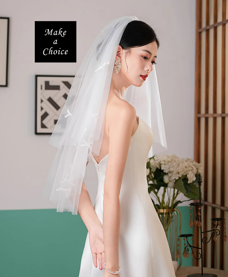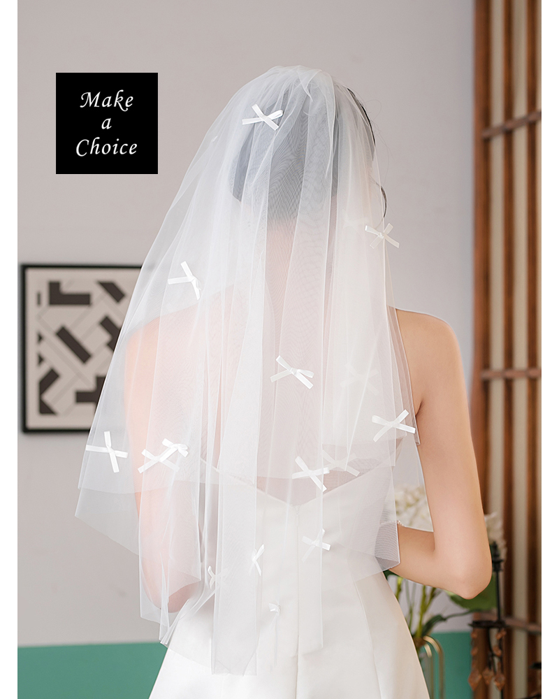 A250105【現貨】法式優雅手縫小蝴蝶結雙層軟紗頭紗頭飾【髮梳】。新娘飾品婚禮求婚自助婚紗結婚登記生日派對表演兒童寫真