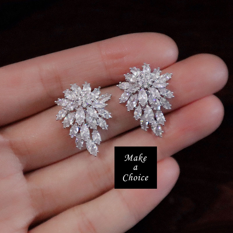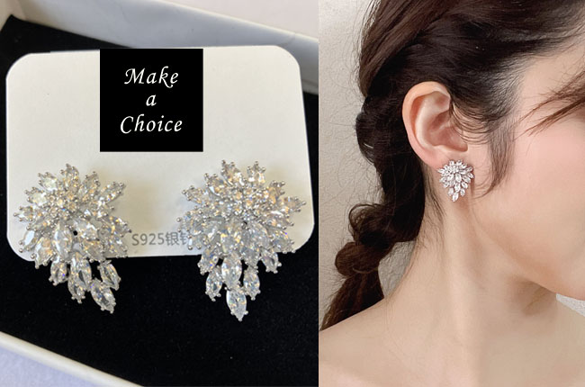 ★ 此款分有「耳針、耳夾」兩款,沒有耳環的可以選擇耳夾,耳勾款的為925銀軟針,這款超美!質感很好,本人(實品)比照片更美麗,不是大件款式,但使用鋯石,故非常閃爍耀眼,日常搭配也很可以。