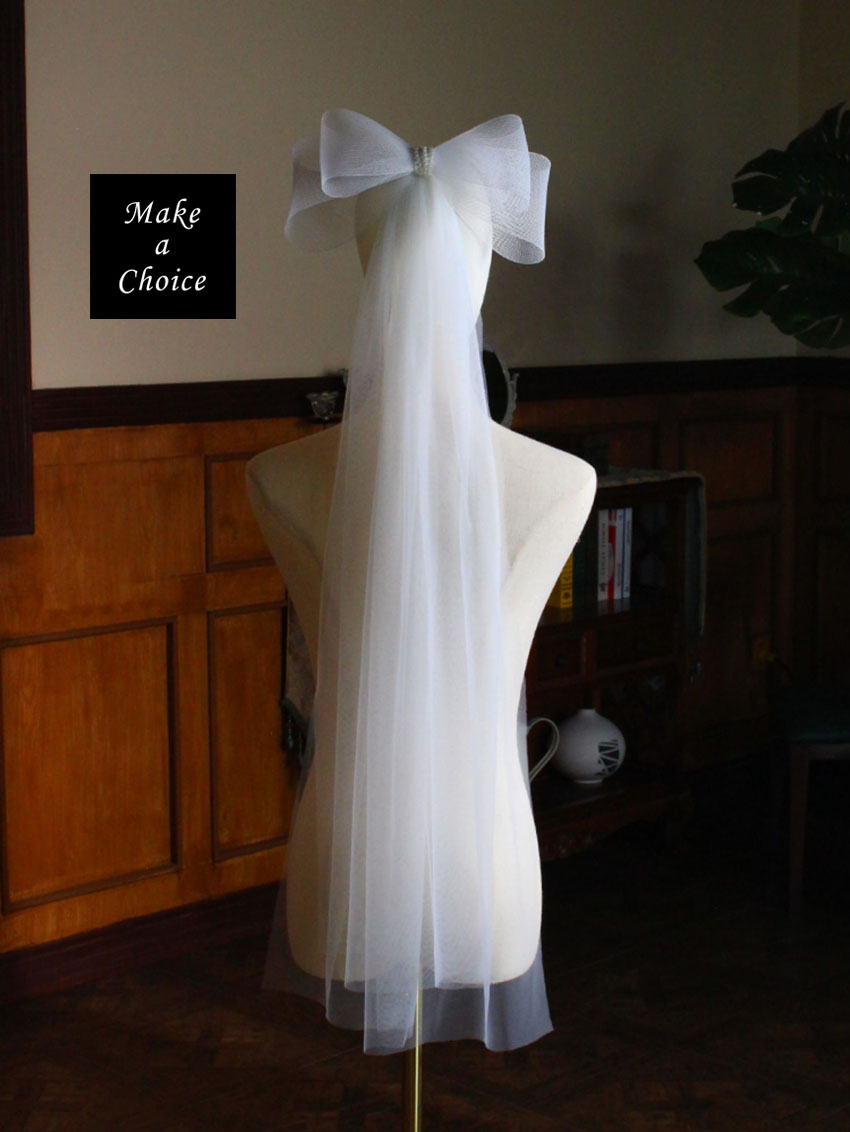 ★ 雙層蝴蝶結為硬挺的網紗材質,蝴蝶結中間有串珠設計,下擺採用軟紗材質,強調垂墜度不屬於澎澎款式唷!主要設計重點在超大蝴蝶,有別於一般頭紗設計,氛圍感十足,搭配簡單小白裙、洋裝出色度上升,整體輕便方便攜帶使用,髮夾(鴨嘴夾)設計,隨手就可使用上,結婚登記、出國拍照都很適合唷!