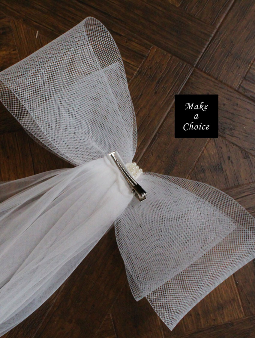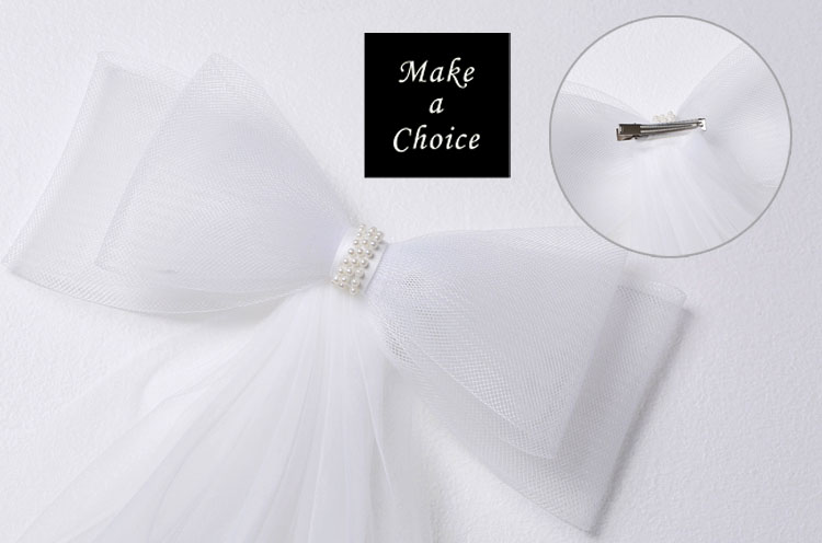 ★ 品名:白色雙層硬挺網紗串珠大蝴蝶結軟紗頭紗頭飾【髮夾】