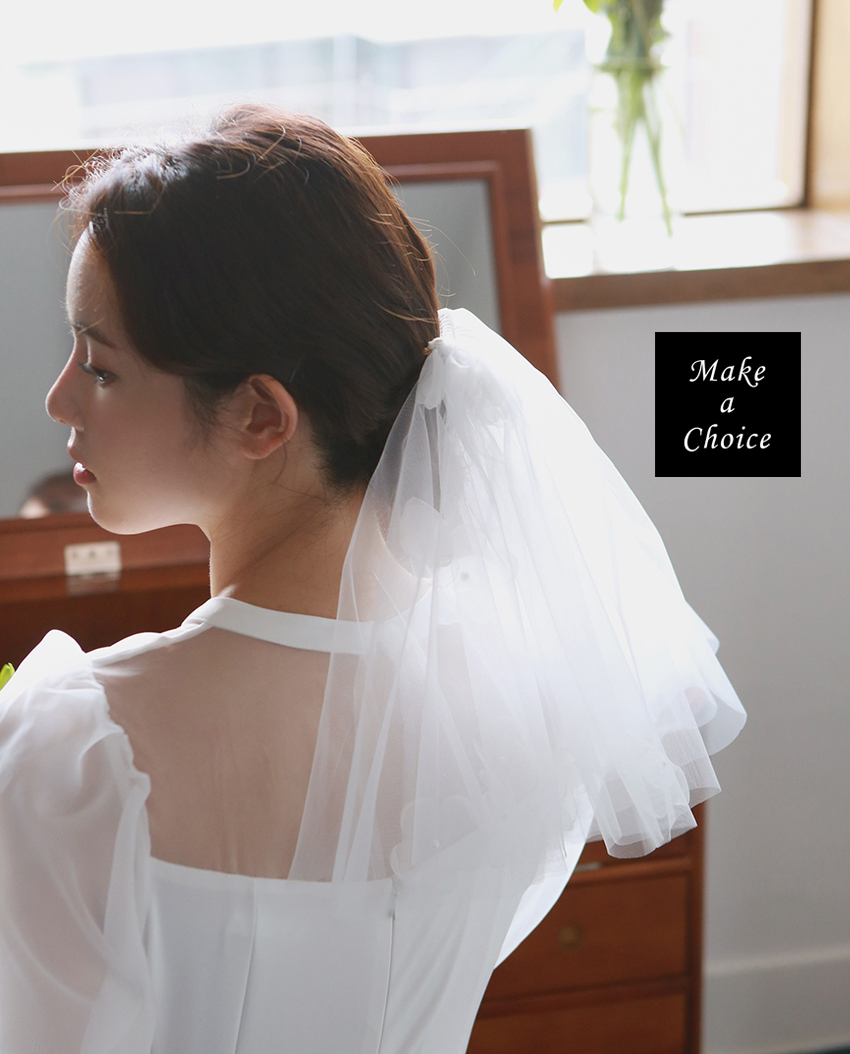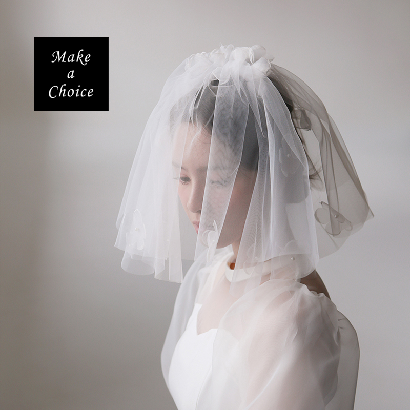 ★ 品名:森系甜美立體雪紡花綴珍珠短款雙層軟頭紗頭飾【髮梳】