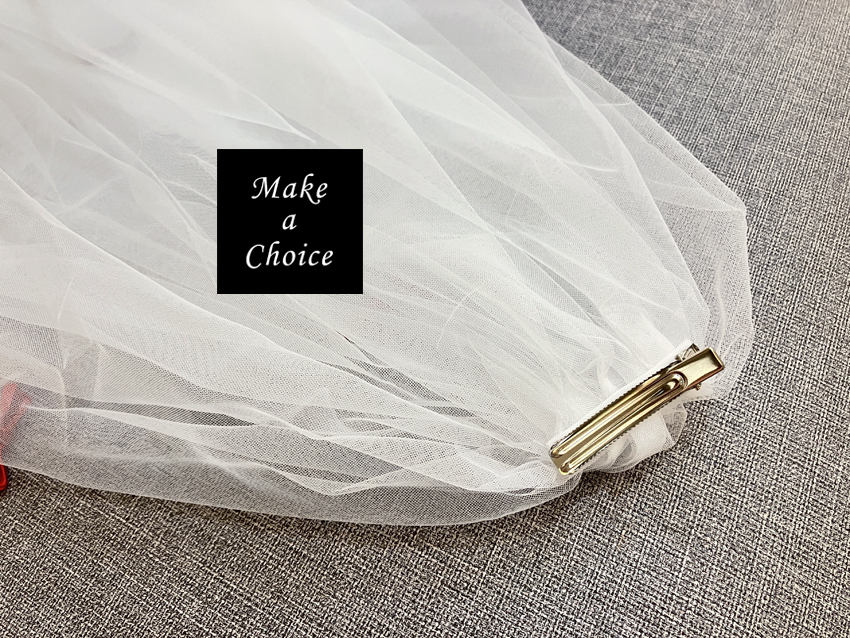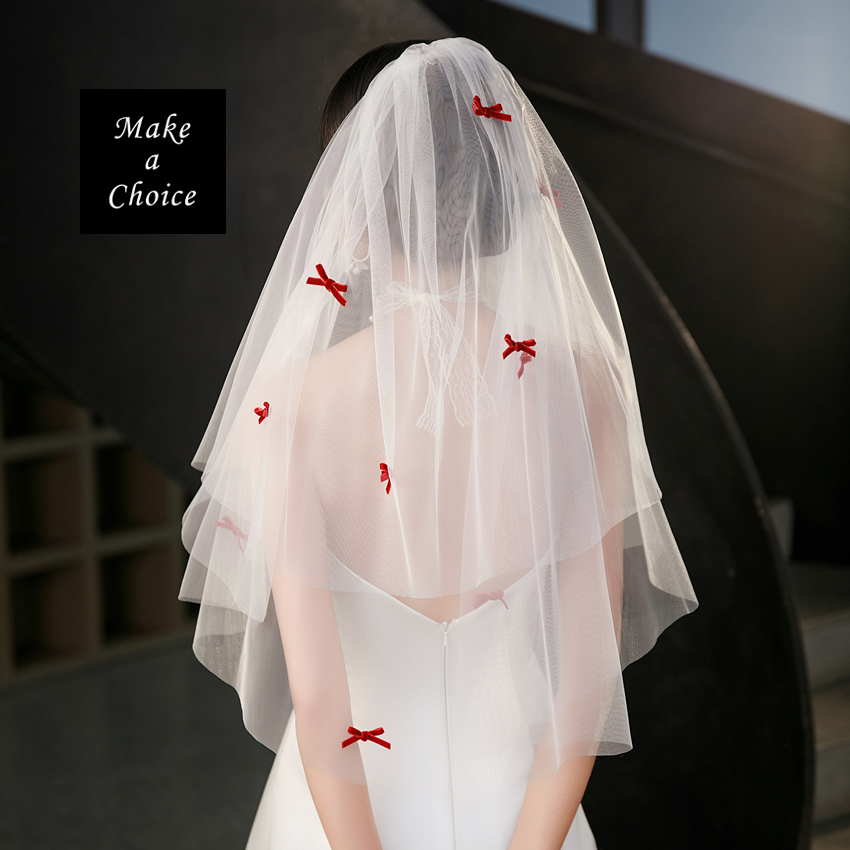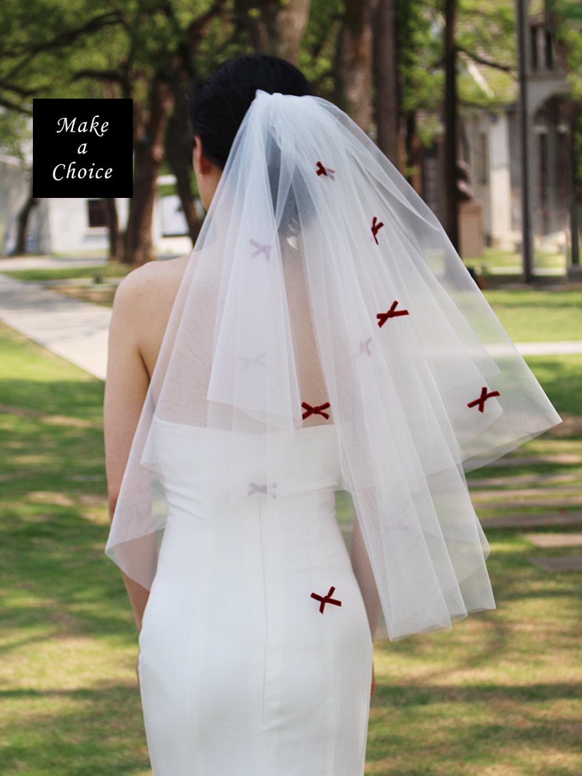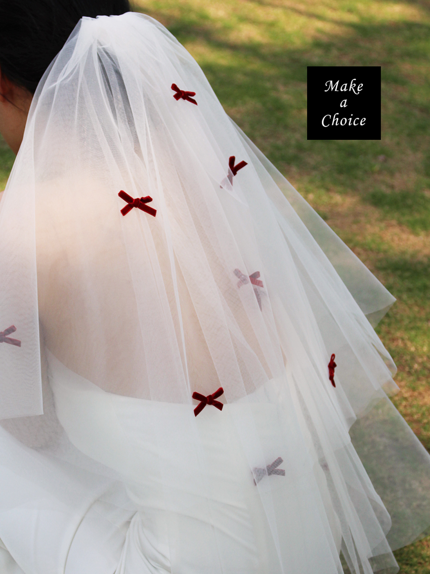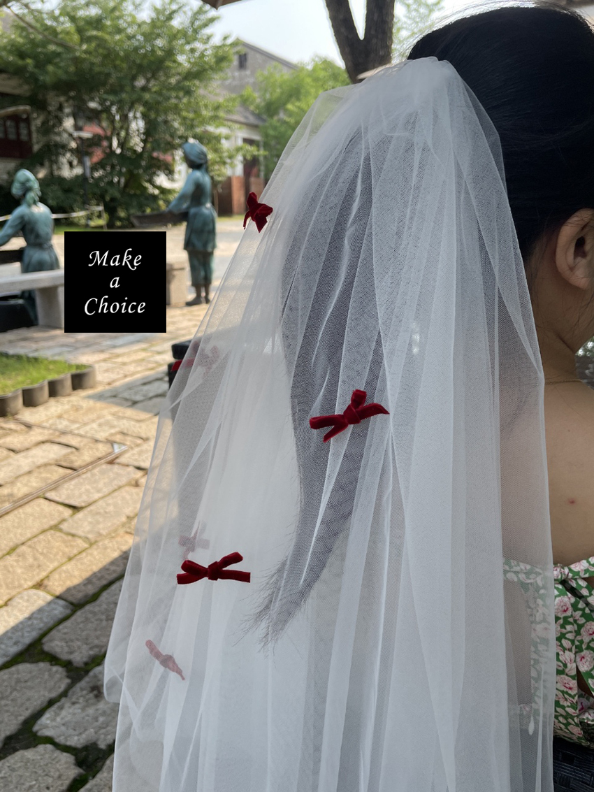 🔸 雙層軟網紗,絲絨材質蝴蝶結,手工縫製不易脫落,上層頭紗長約55cm、下層頭紗75cm,搭配簡單小白裙、洋裝出色度上升,整體輕便方便攜帶使用,髮夾(鴨嘴夾)設計,隨手就可使用上,結婚登記、出國拍照都很適合唷!蝴蝶結手工縫製位置隨機不固定,但普遍分佈在整件頭紗上。P.S.若上層頭紗做遮面使用,看到蝴蝶結是背面唷!兩層垂放在頭後方,看到蝴蝶結正面。