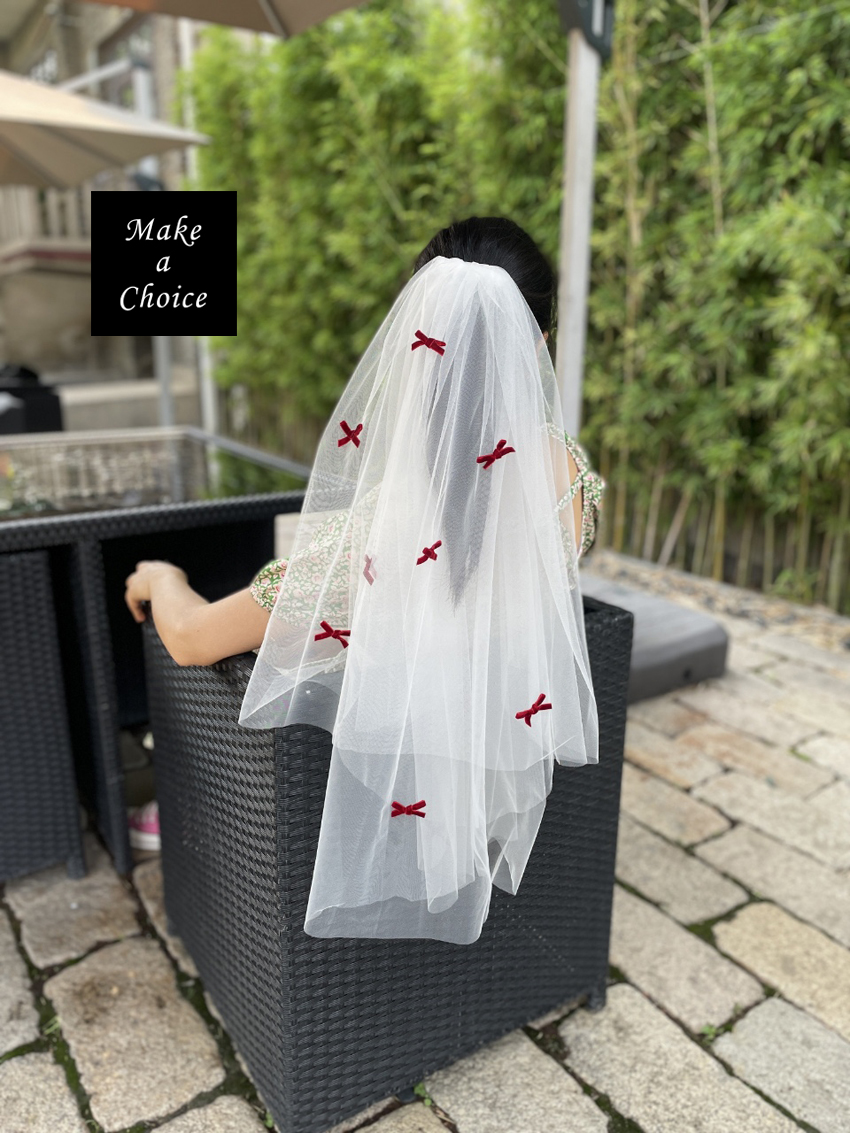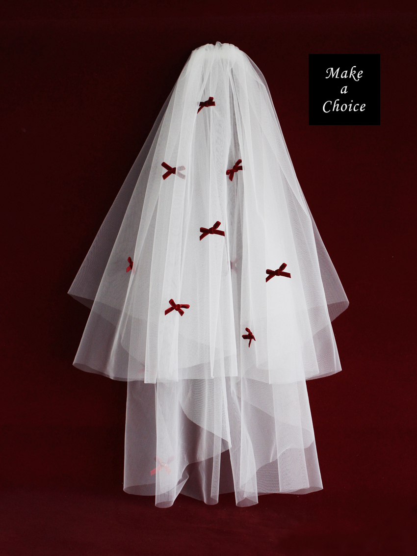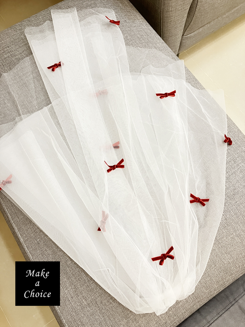 🔸 顏色:白色網紗、酒紅色蝴蝶結。