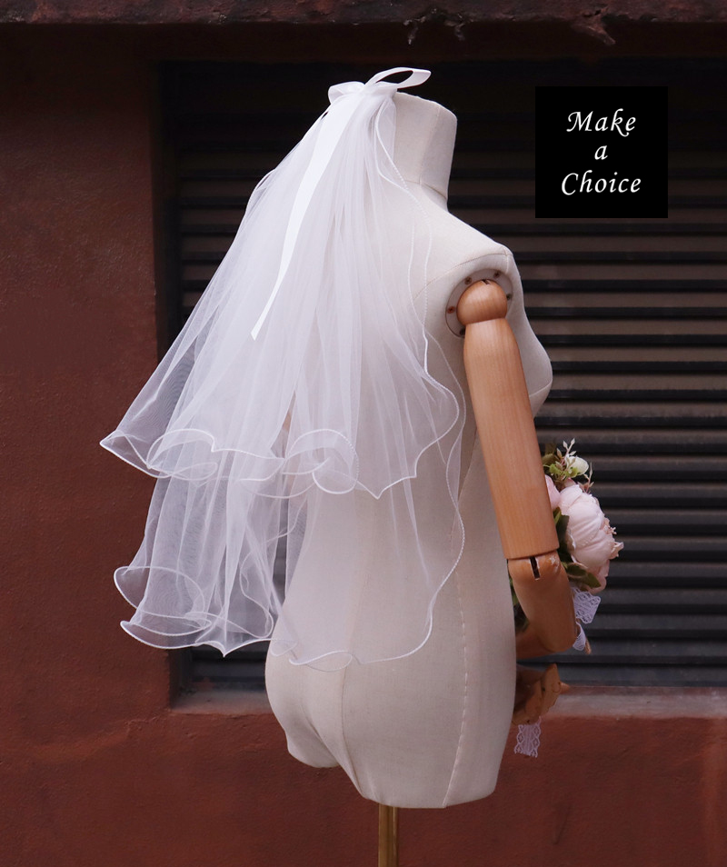 ★ 尺寸:共二層頭紗,全長約60cm。(誤差在1-2CM左右)