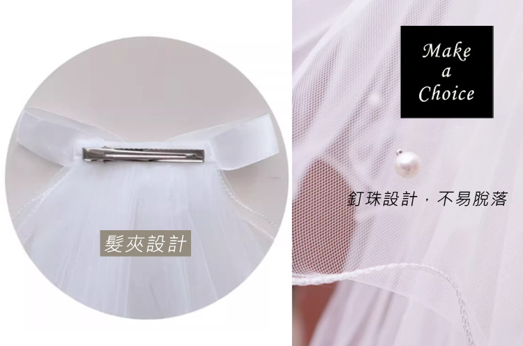 ★ 此款頭紗金屬附髮梳,方便配帶,自助婚紗推薦!
