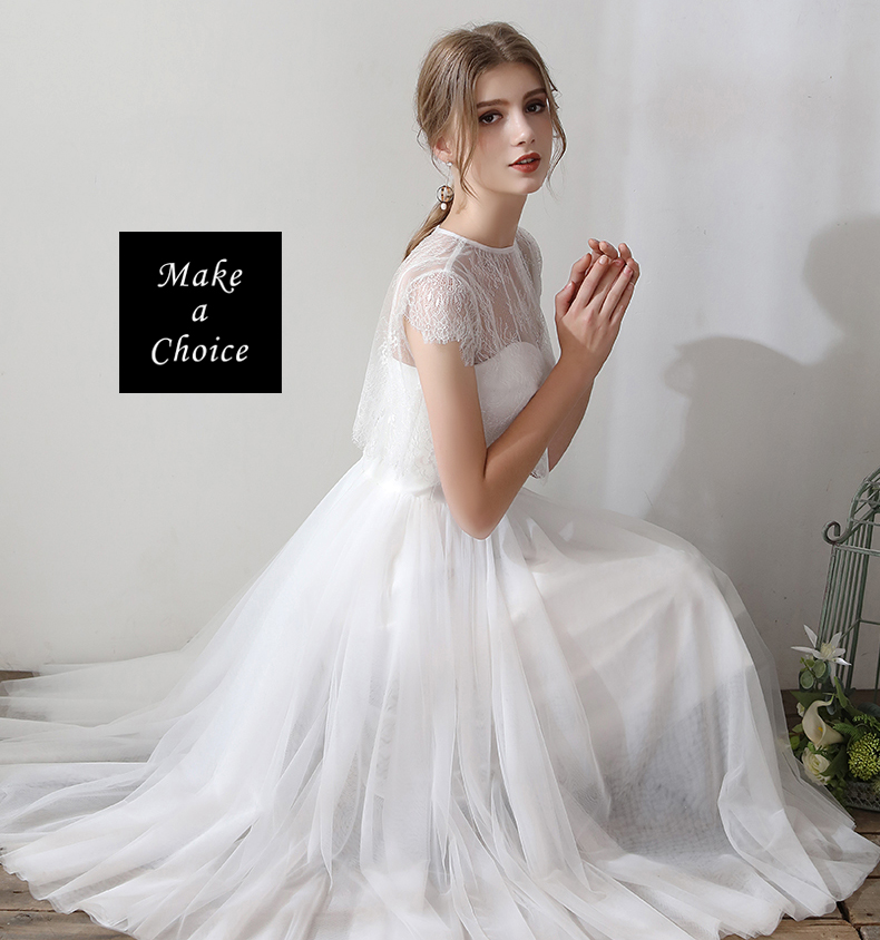 C180803【XS-XXL】【預購】二件式蕾絲短上衣細肩網紗綁帶輕婚紗輕禮服