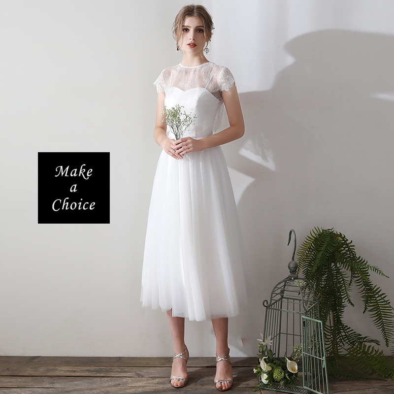★ 有二種變化穿著,細肩帶平口網紗輕禮服可單穿,或搭配蕾絲短袖上衣,禮服上身為軟緞面,下身為網紗材質,後背為綁帶設計,這款二穿很貼心可優雅可活潑,面料舒適,蕾絲短上衣不會刺刺的唷!適合自助婚紗、草地婚禮、旅拍。