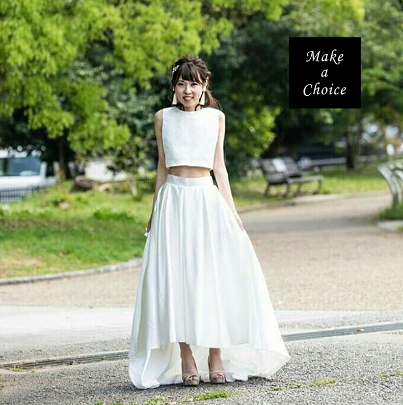 ★ 簡約俐落的二件式/二截式設計,上身為緞面+蕾絲面料,下身為緞面前短後長,裙兩側有口袋設計,上身與下身裙子皆為後背式拉鍊。上身衣長為38cm,依每人身型狀況不同,不一定每個人都有大面積露腰,下身裙子前長80cm、後長130cm,請再自行測量了解唷!適合自助婚紗、草地婚禮、旅拍。