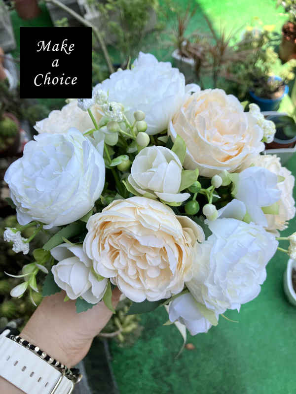 ★ 仿花捧花多為塑料材質,手工製作會使用接著劑黏合,做好直接密封包封,多少會氣味殘留,若氣道太重可放著陰涼通風處使其揮發氣味。