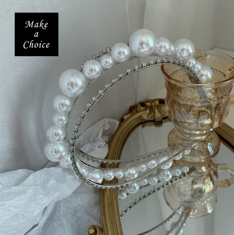 ★ 品名:甜美優雅雙層水鑽大珍珠髮箍頭飾